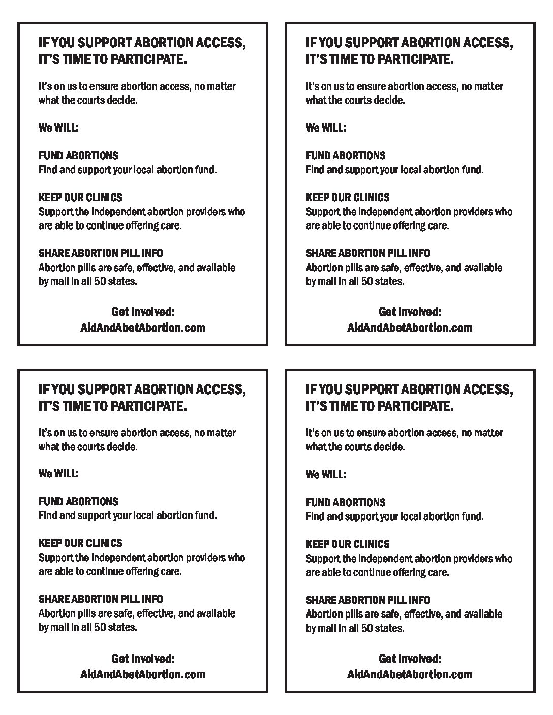 On July 4, 2022 SYA created a pop-up lemonade stand in front of the Supreme Court in Washington DC where we shared abortion pill information and gave away free lemonade. These ready-to-print materials designed by our friends at Civilization are ready to be used at a DIY lemonade stand or other protest of your choosing.