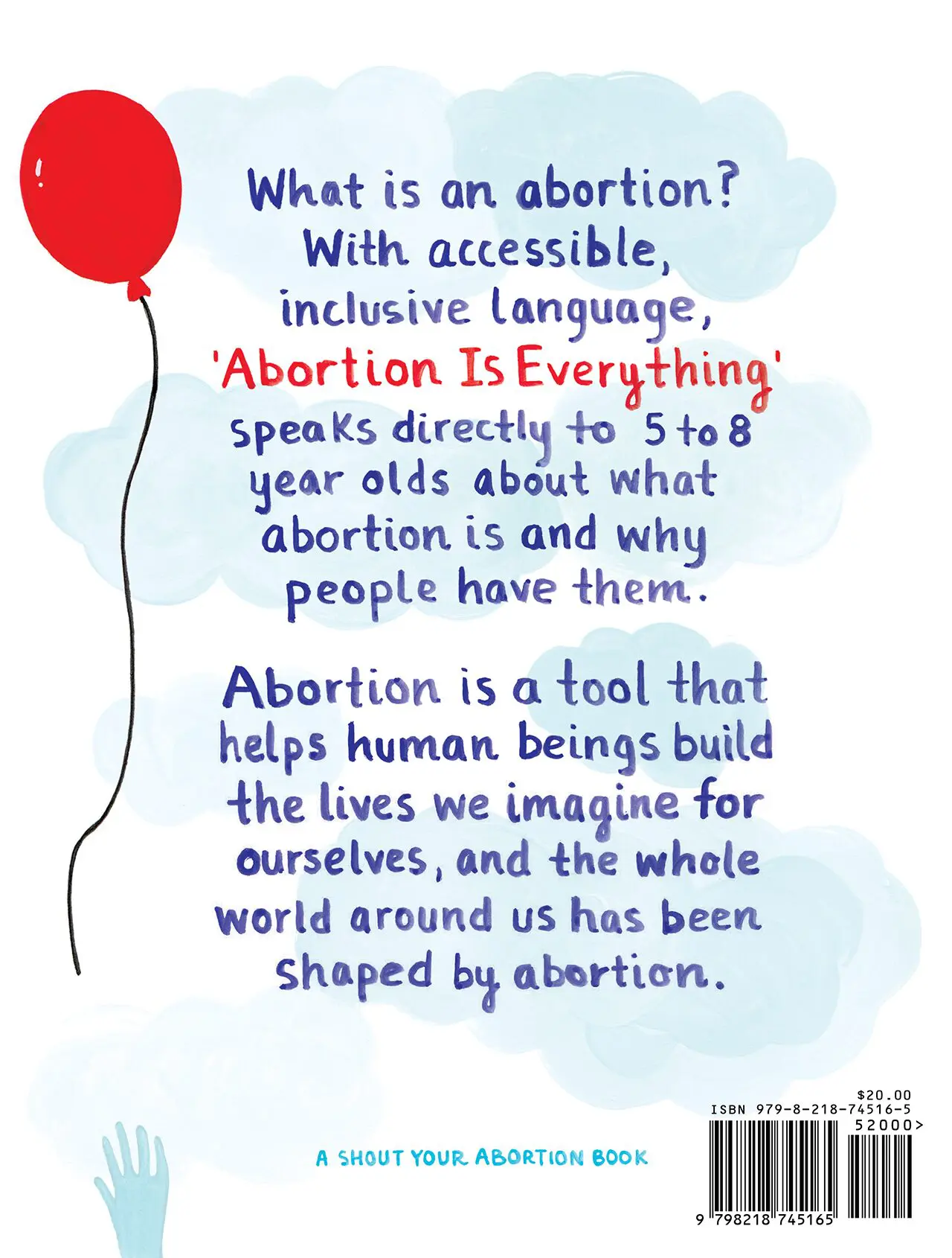 Abortion Is Everything speaks directly to five to eight-year-olds about what abortion is, how it might feel, and why people have abortions. With accessible, inclusive language, Abortion Is Everything frames abortion as the actualization of a uniquely human superpower: our capacity to imagine the future and make choices that lead us towards the life we envision. Abortion is a tool that allows human beings to shape our destinies, and which has shaped the entire world around us.