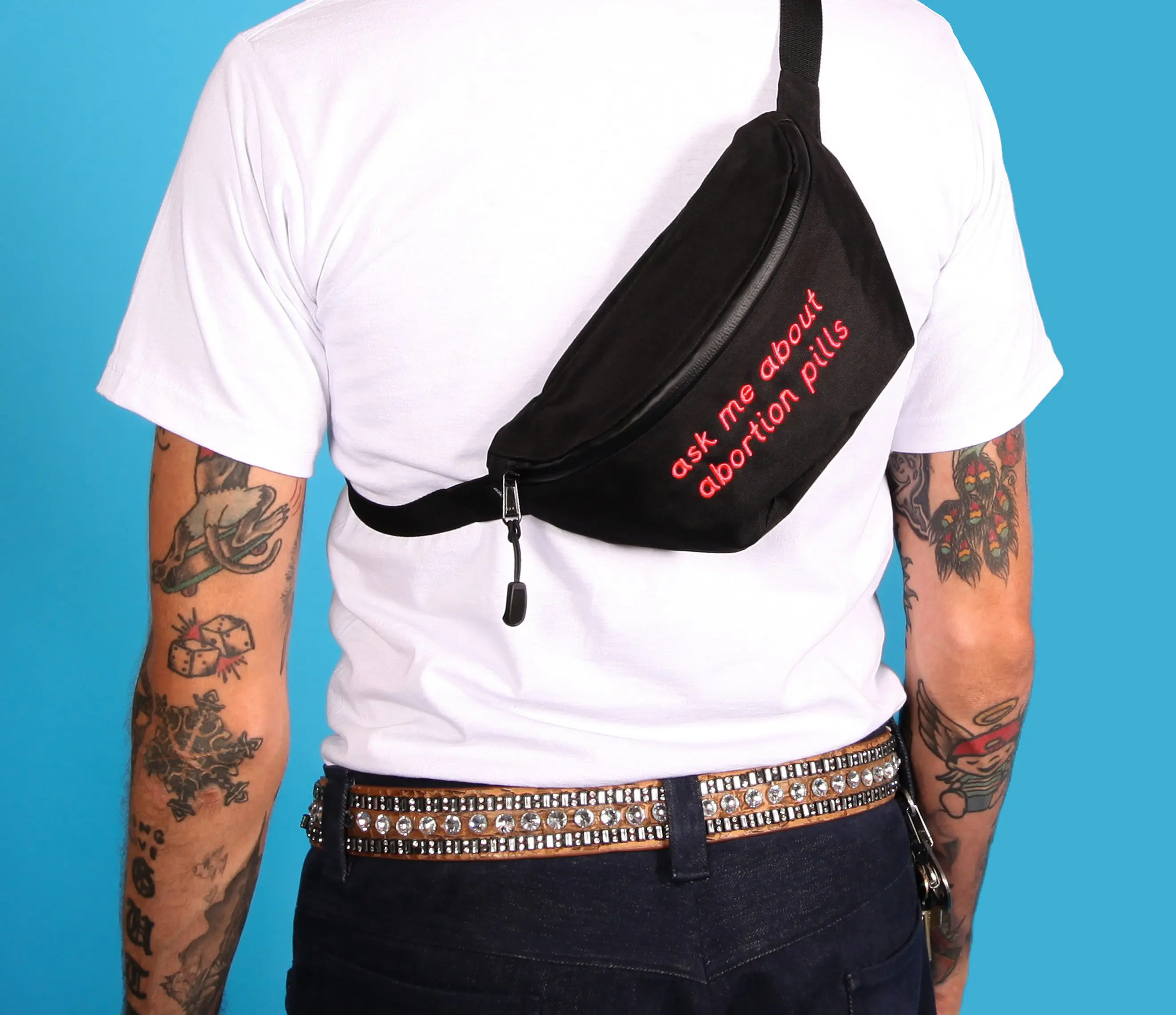 Fanny packs are convenient, inexpensive, and they’re not going out of style anytime soon… just like abortion pills! Abortion pills are safe, effective, and available by mail in all 50 states, but far too many people do not know this option exists. One of the best ways that you can expand abortion access is to help spread the word about abortion pills, and this embroidered fanny pack is an excellent way to get those conversations started. And don’t worry, you don’t need to be an abortion pills expert to field those questions, because there’s a link to Plan C Pills tucked discreetly inside. Imagine how awesome it will feel to unzip your fanny pack and watch someone get informed about their options, or even source abortion pills on the spot.